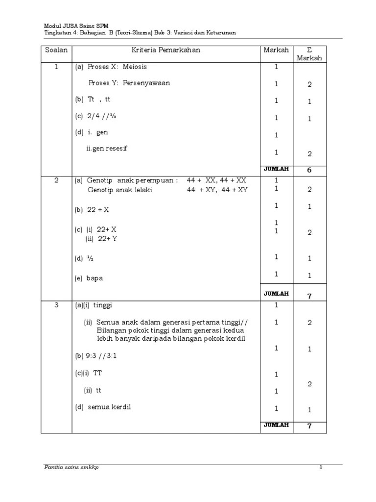 Soalan Sains Tingkatan 4 Bab 3 Keturunan Dan Variasi - M 3 Keturunan Dan Variasi